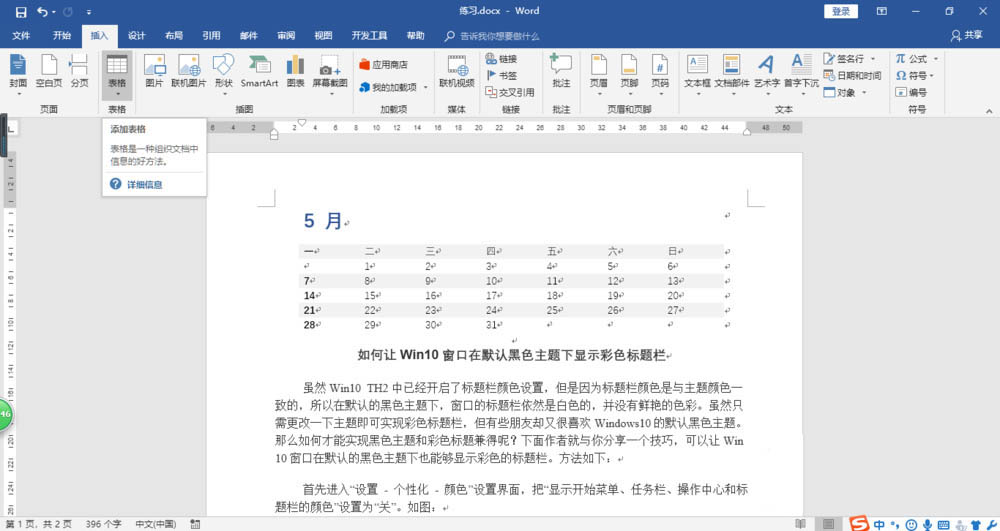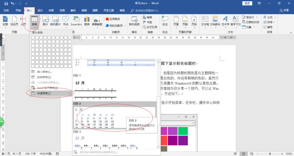 Word2016怎么利用表格内置样式插入日历?