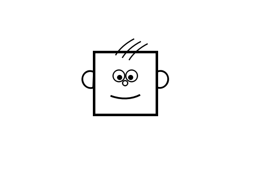 5、使用【形状】——【弧线】,给方脸画出嘴巴。并设置轮廓线为【黑色】,线型在1.5左右。如下图。