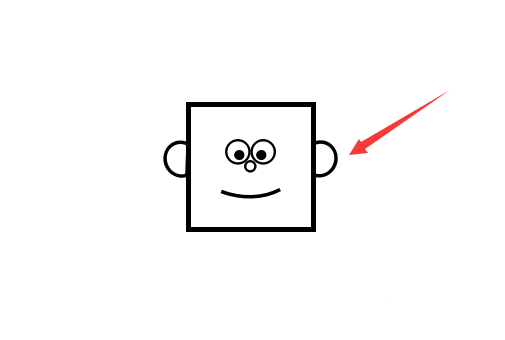 6、使用【形状】——【弦形】,画出方脸的耳朵,设置轮廓线为【黑色】,填充色为【无色】。并按下图位置放置。
