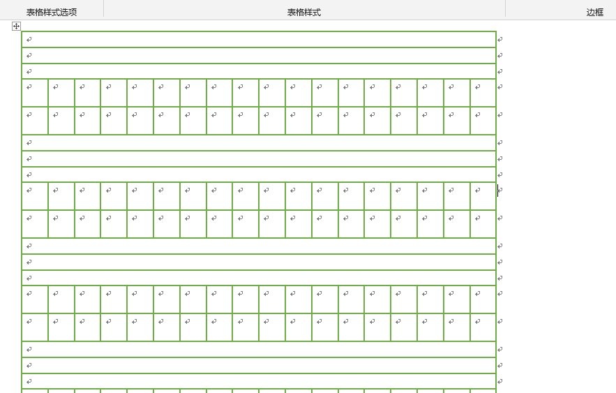 7、选中第一行,合并第一行所有单元格。后面的,我们直接使用「F4」快捷键,重复上一步操作。按照四线三格的格式进行【合并单元格】