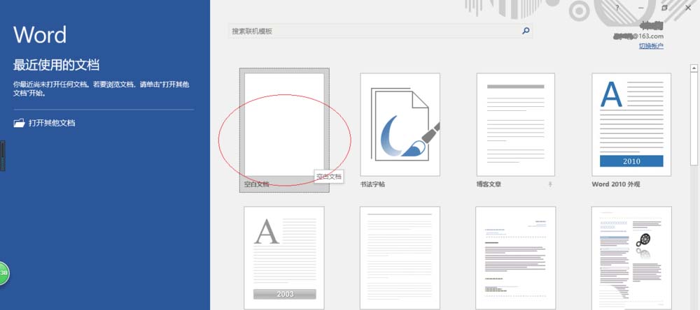 1、启动Word2016文字处理应用软件,如图所示点击屏幕右侧新建空白文档。