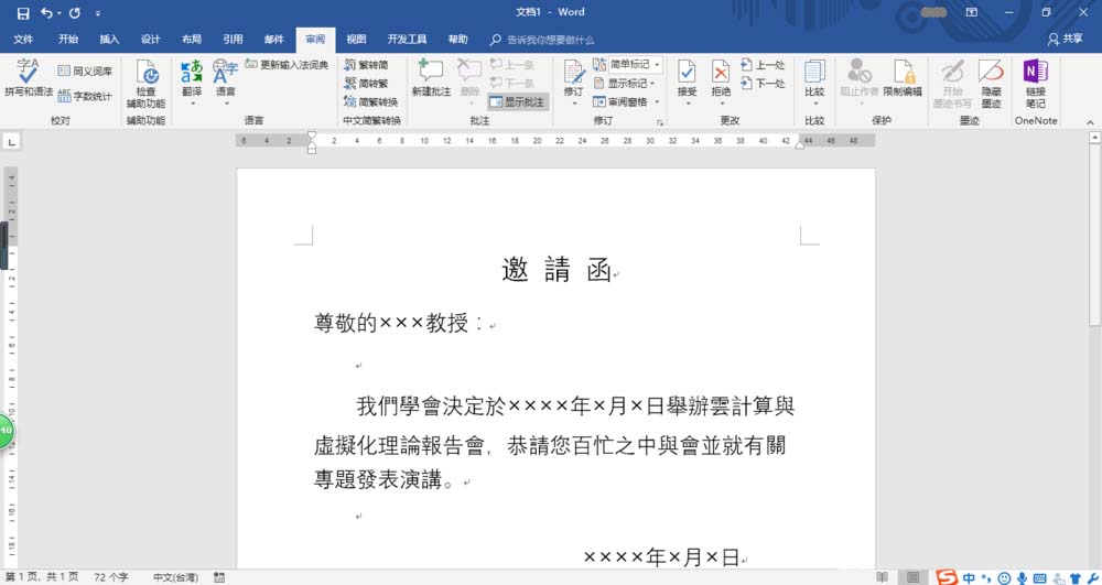 2、根据学会邀请创建文本文档,如图所示。本例要求制作繁体邀请函,用于邀请港、澳、台和海外学者参加。
