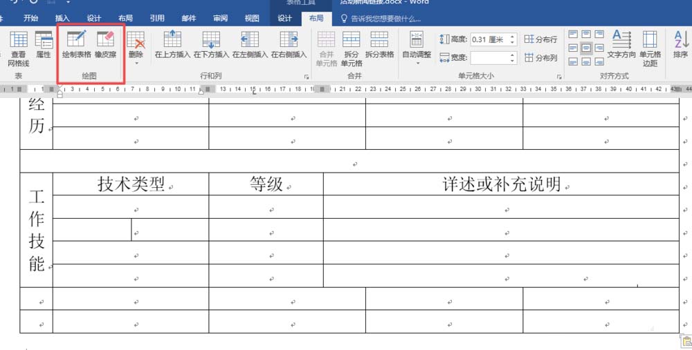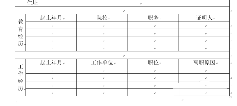 8、合并需合并的单元格,填写上工作经历,教育经历等经历。
