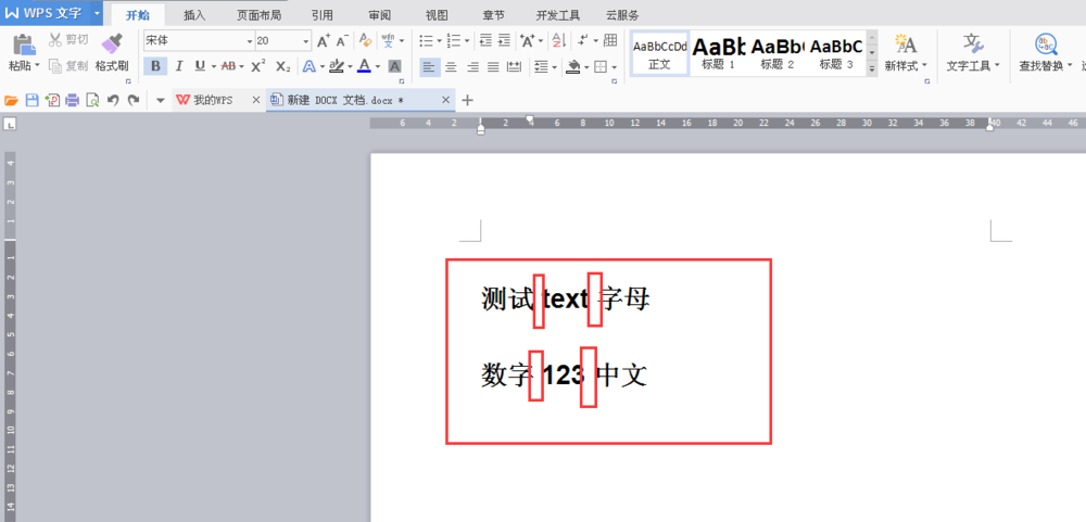 4、返回后我们即可发现中文+字母间的间隙没那么大了