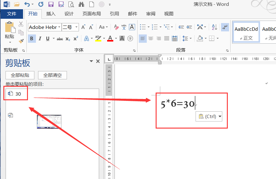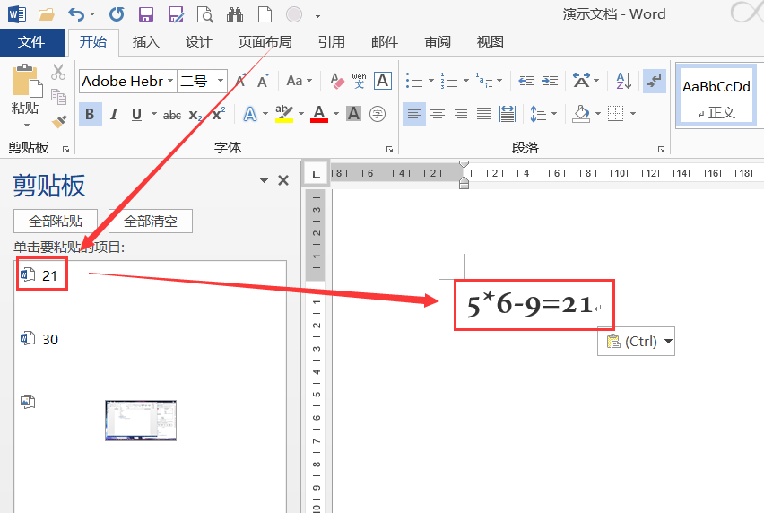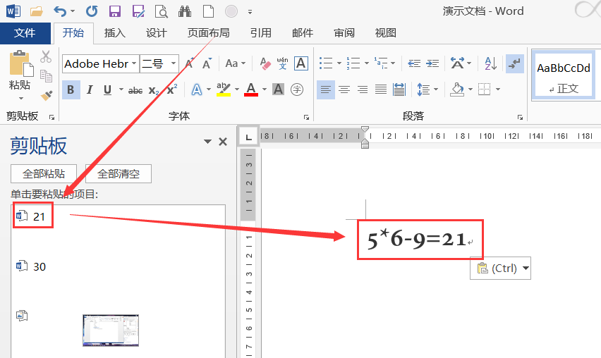6、其计算结果就会自动保存在剪贴板中,直接粘贴出来就行了。复杂一点的运算Word也能计算出来。