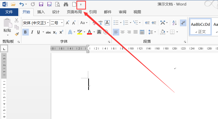 1、打开Word文档,点击界面左上角向下的小箭头。