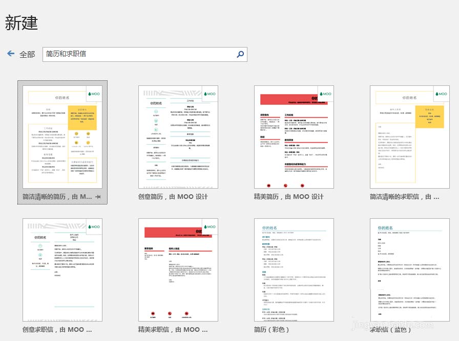 3、在搜索结果列表中,我们可以看到许多的word简历模板,我们选择自己喜欢的一个。