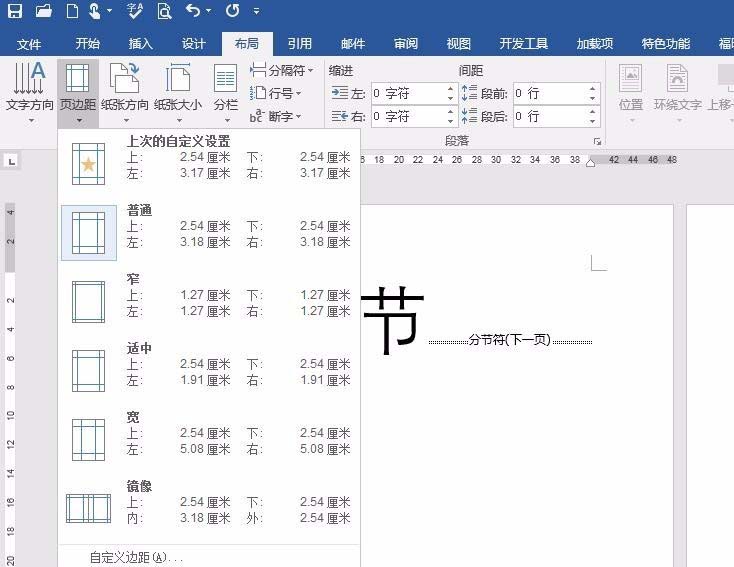 2、设置页边距,每个节采用相同的页边距设置。