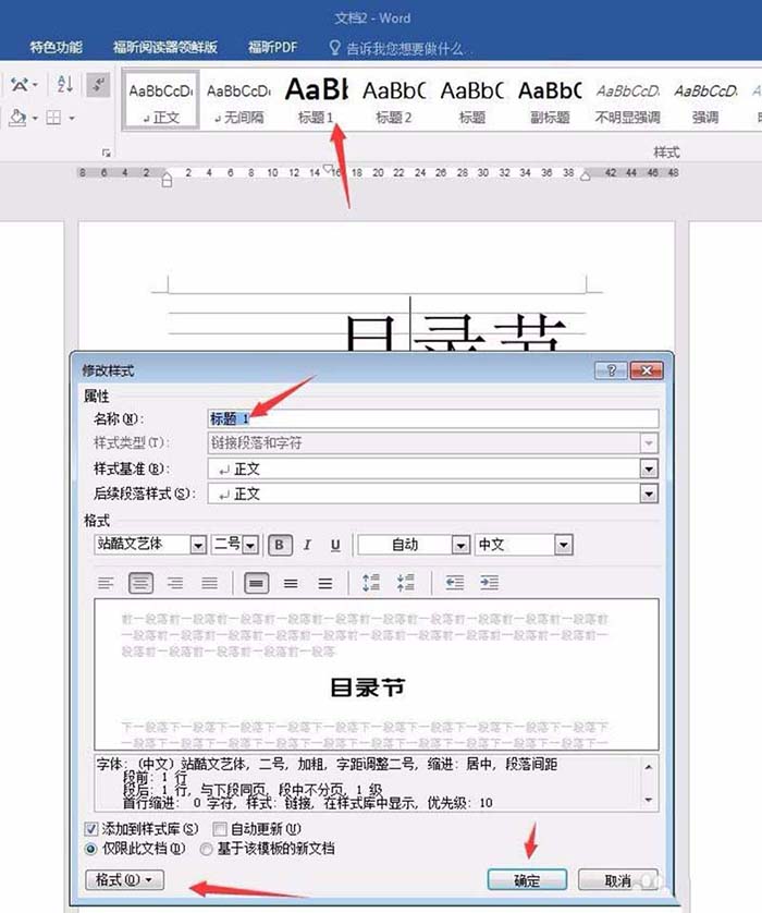 5、设置标题样式,含字体、字号、段前段后行距、对齐方式。