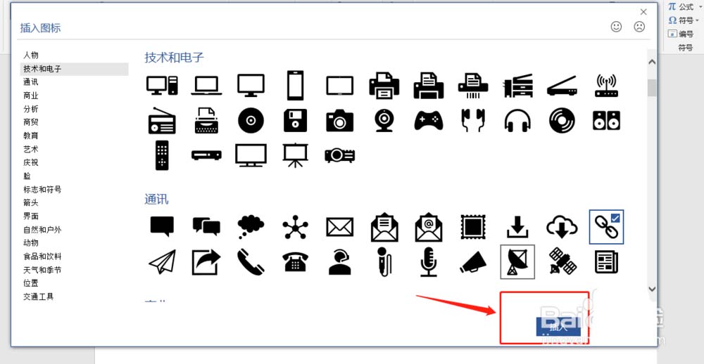 3、在【插入】选择【图标】