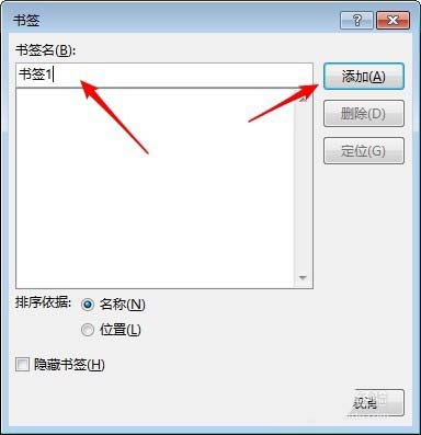 3、在打开的窗口中,输入书签名字,点击"添加"。这段文字就插入了书签。