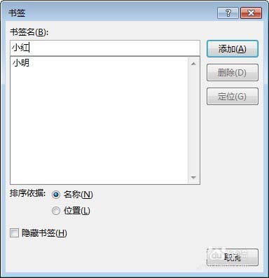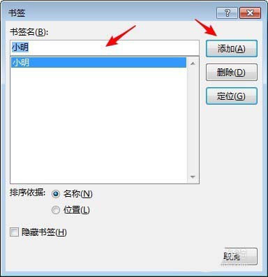 3、输入书签名称,点击"添加"。