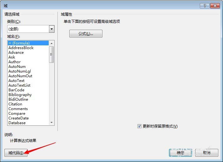 6、点击"域代码"。