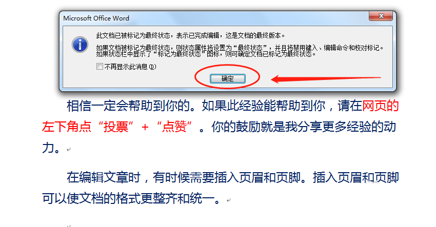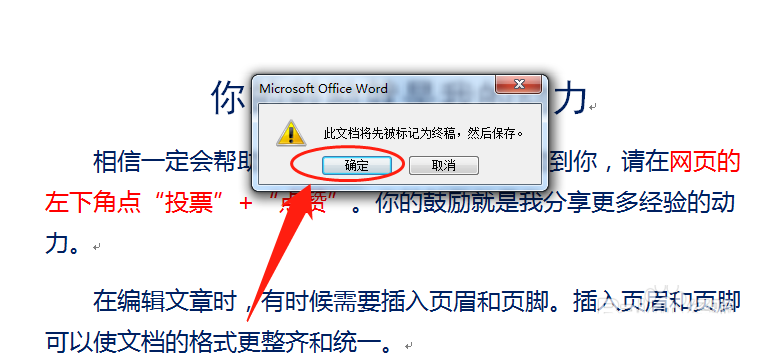 4、弹出提示框,单击"确定"按钮,确认标记为最终稿。