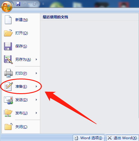2、在下拉列表中选择"准备"选项。