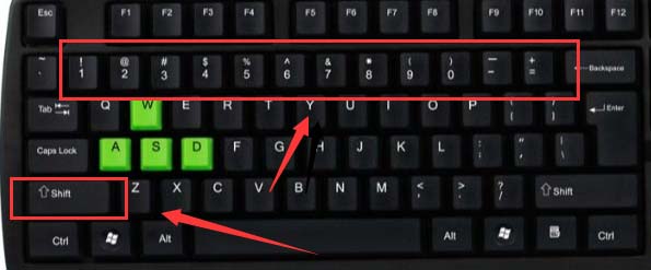 7、根据下图,按住shift同时按1-0可进行不同符号输入