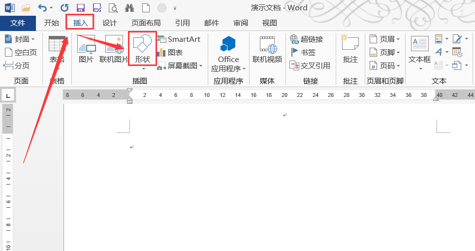 2、切换到"插入"选项卡,找到"形状"按钮。