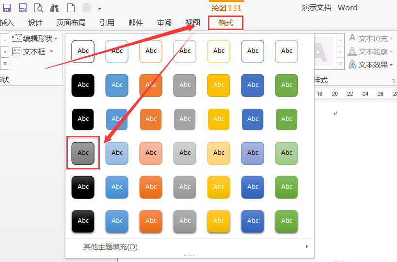 6、选中绘制的图形,切换到"格式"选项卡,在"形状样式"区域下选中适合的样式。