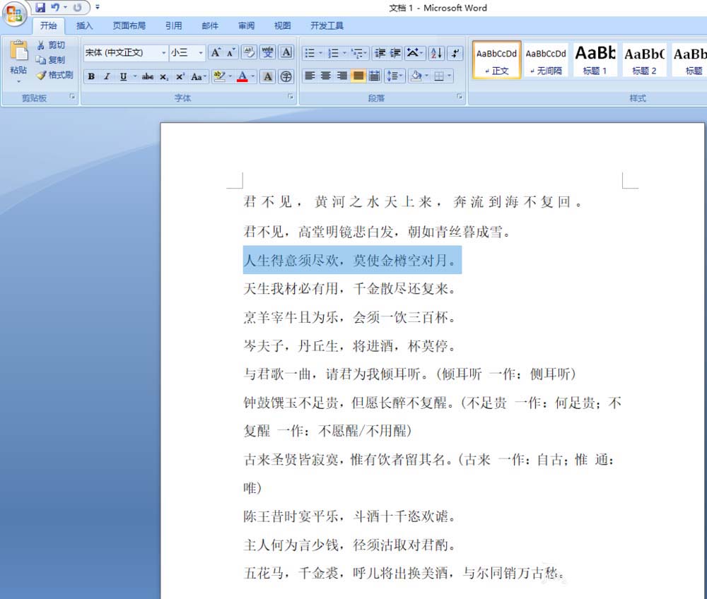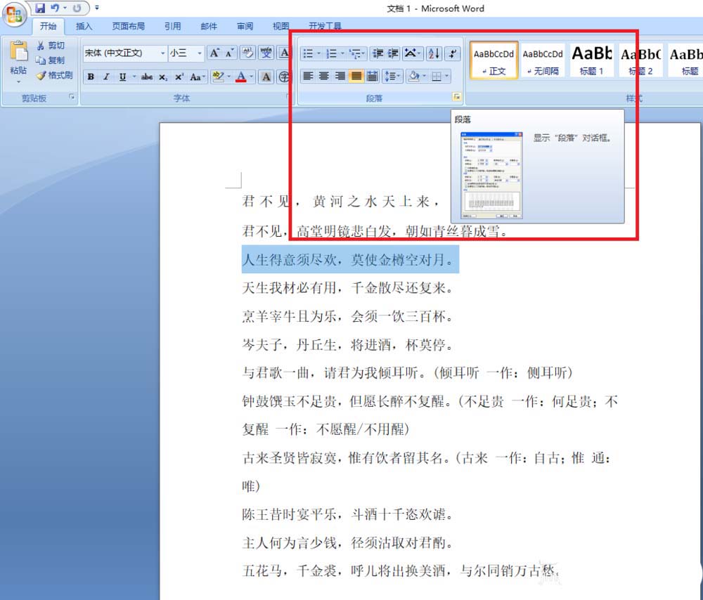 1、选择段落如图所示