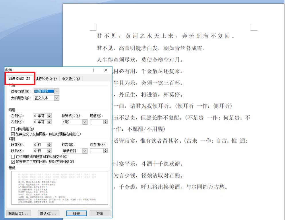 3、选择缩进和间距