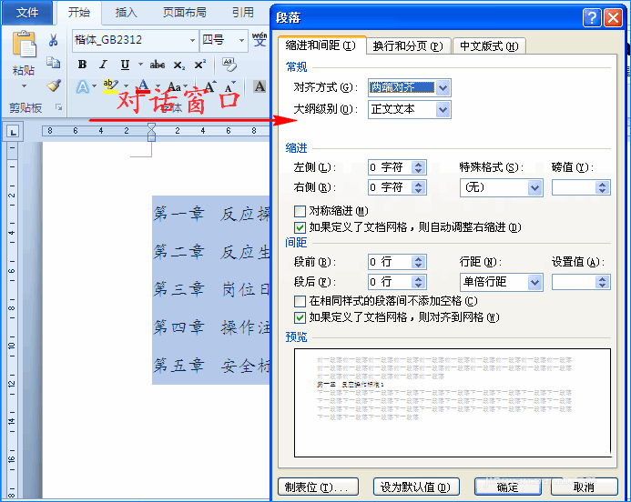 2、然后我们点击主菜单中的"开始",在其子项中找到"段落"组并单击,这时会弹出对话窗口。如图所示:
