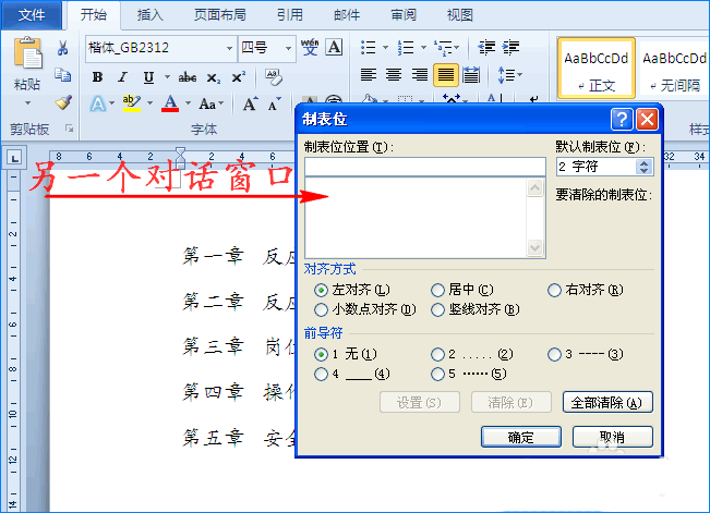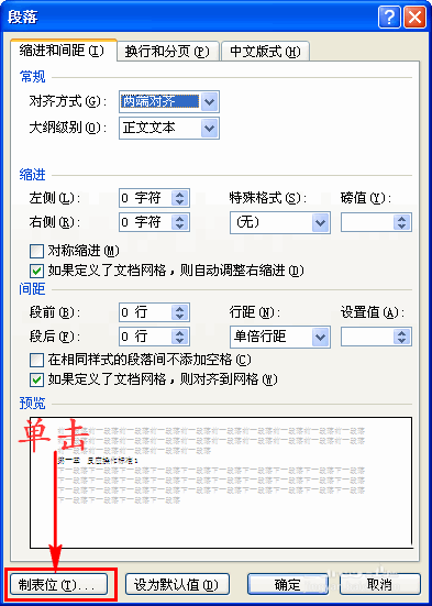 3、在对话窗口中我们点击"制表位"选项,这时又会弹出另一个对话窗口。如图所示: