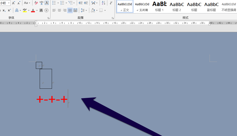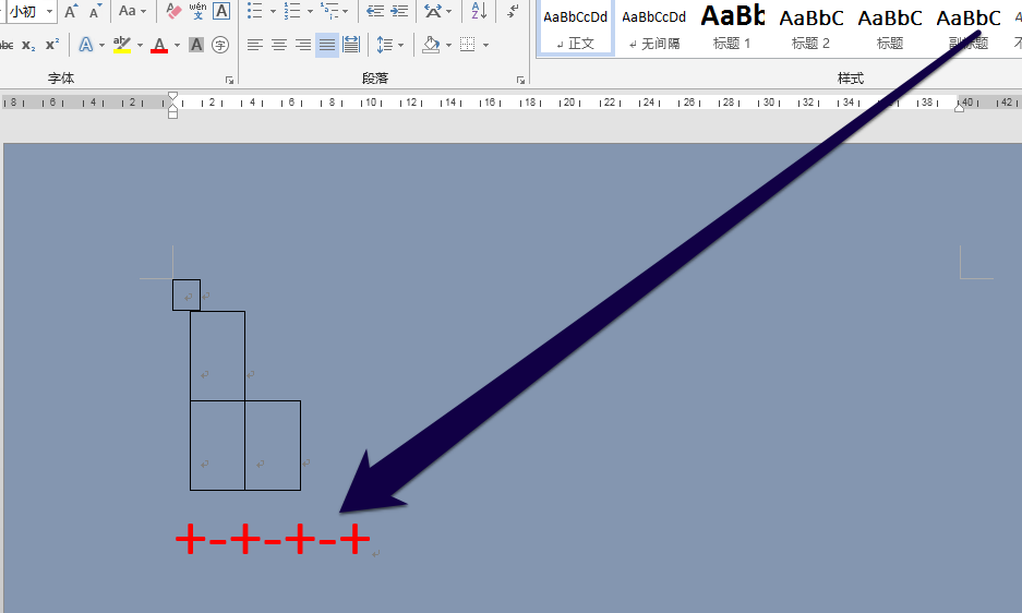 2、然后在已经插入好的表格下面,输入加号和减号如图样式。