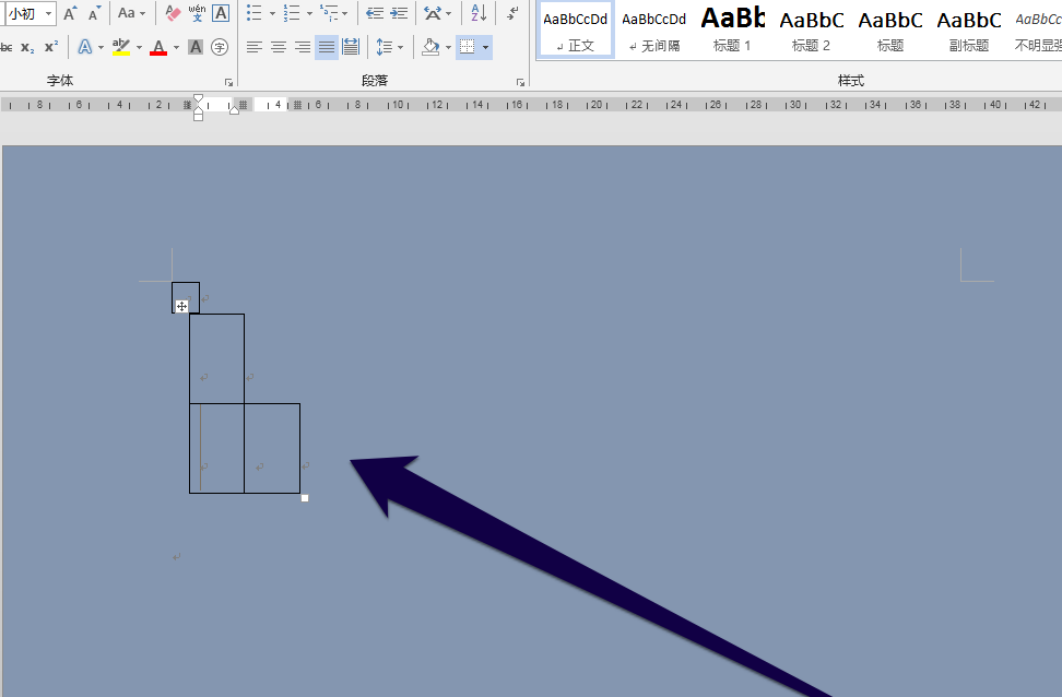 4、下面我们需要按照楼梯样式增加一个表格框,我们先把光标移动刚才插入表格框下面。