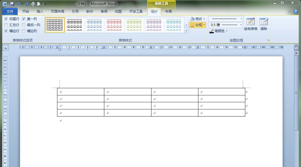 8、现在我们要把表格的线隐藏起来。选中整个表格,单击"设计"菜单下的"边框"按钮,在弹出的下拉列表中选择"无边框"即可。