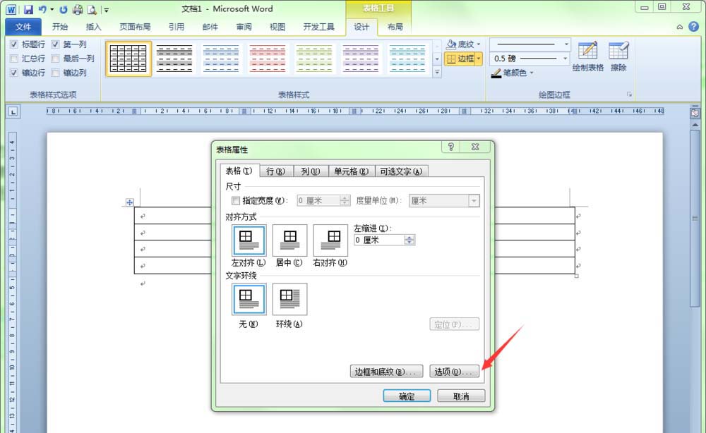 3、在弹出的"表格属性"对话框中,单击对话框右下方的"选项"按钮。