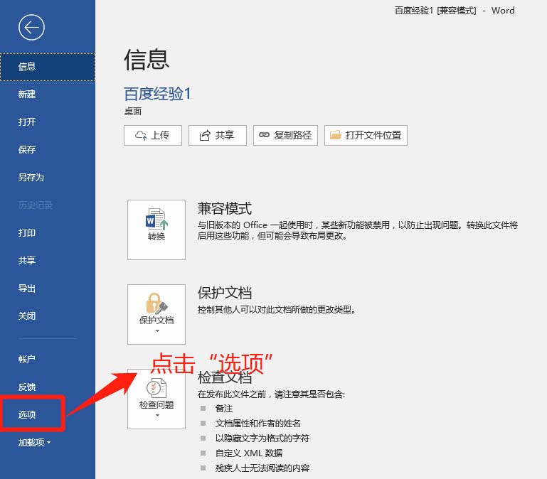 3、在弹出的窗口中,找到"选项"菜单并点击它。