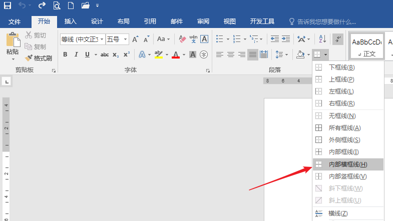 2、点击【开始】—【边框】—【内部横框线】。