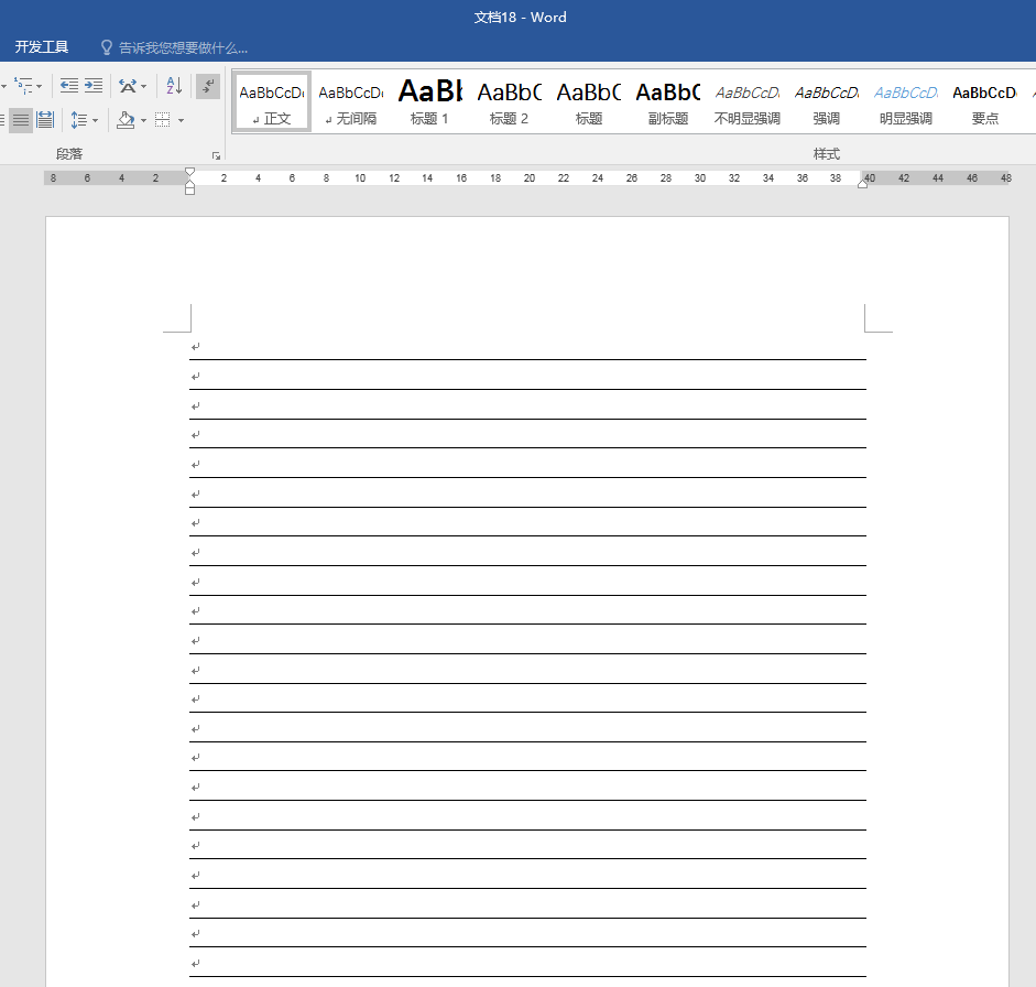 4、接着,继续向下按回车键,就得到了整页的横线。