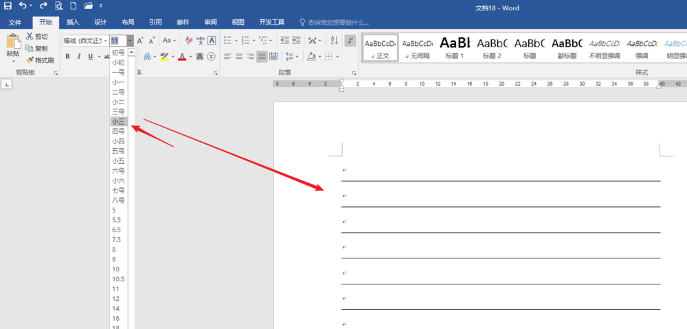 5、然后全选文档,调整文字的大小,则横线也会自动增高会缩小。