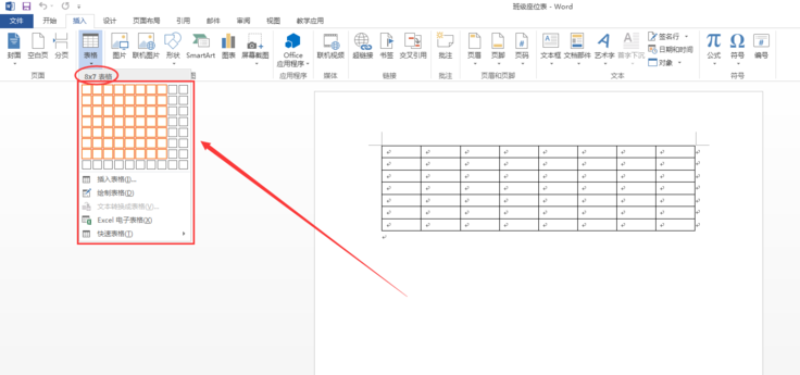 3、在表格选项卡中,选择你需要制作的行数和列数。班级座位表的制作,一般要看班级里的人数多少。