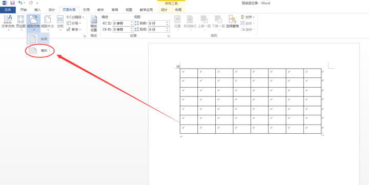 4、选择好列数行数后,在页面设置里把纸张方向设置为"横向"。