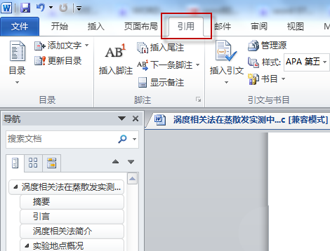 1、word菜单中选择引用