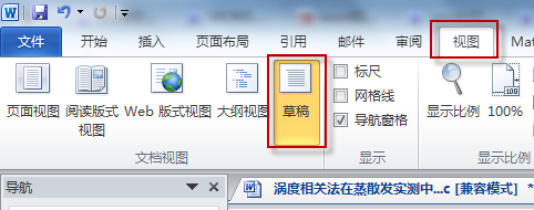 1、先把文档视图设置为草稿