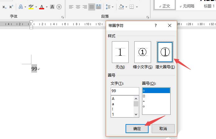 6、结果如图所示,这样我们就快速的给一个两位数添加了圈号了。