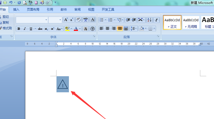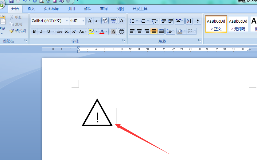 6、选择小三角后点击确定,原来的带圈图标就会变成带带三角形的图标啦,这样警告标示图标就打出来啦,如下图