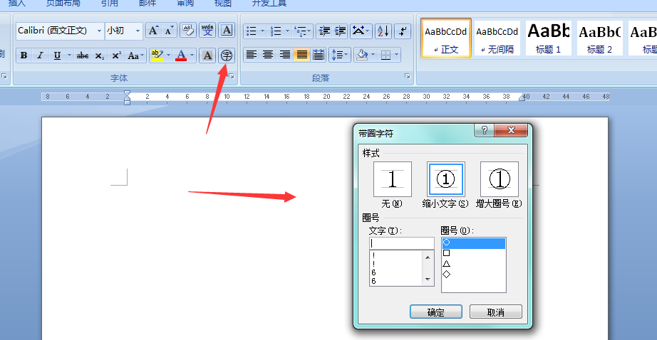 2、打开带圈字符,在小框里就可以看到有个文字和圈号选择,如下图