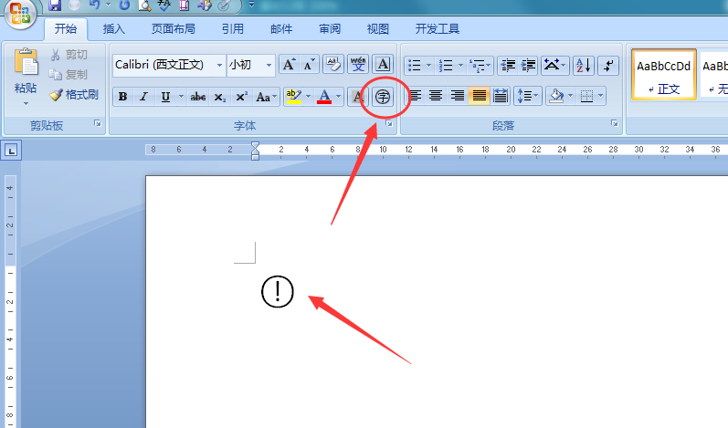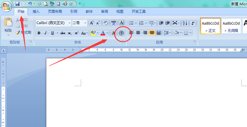 1、打开word文档,在开始菜单栏里有个带圈数字功能,如下图