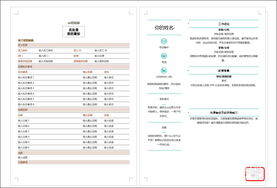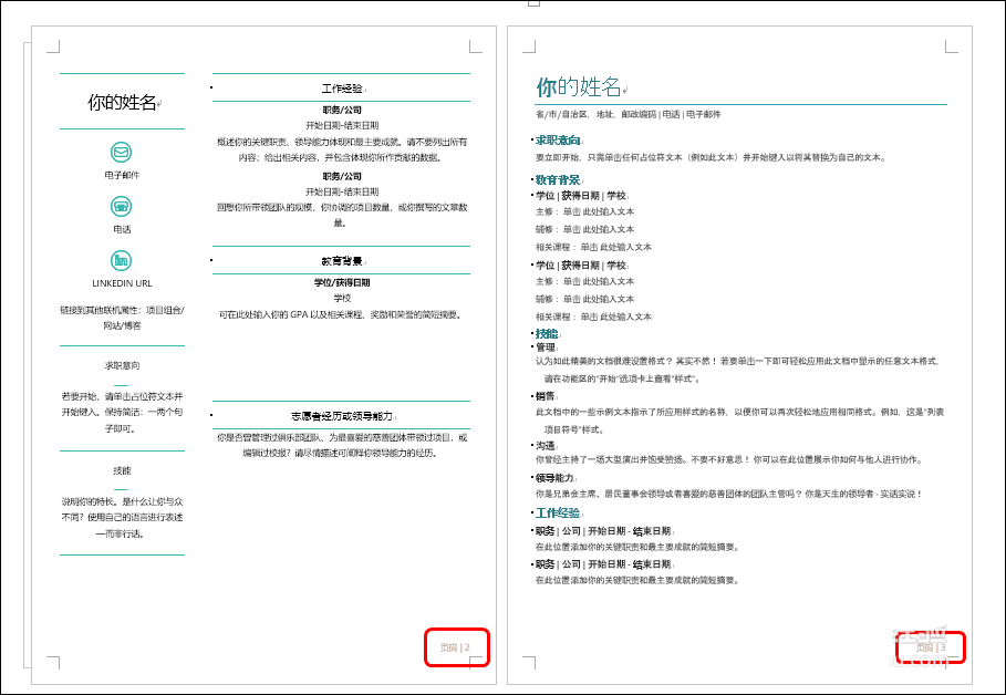 2、可看到文档会并排显示两个页面,如下图所示。