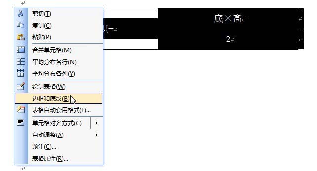 在键入等式和分子式的具体内容后,选中整个表格→单击鼠标右键→点击"边框和底纹"。