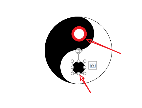 5、这时候,我们再绘制两个黑白填充的更小的圆,插入到图形里面,我们的太极图即可完成,希望能够对大家有帮助。