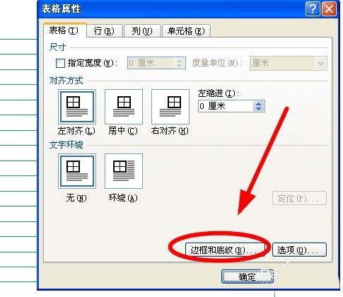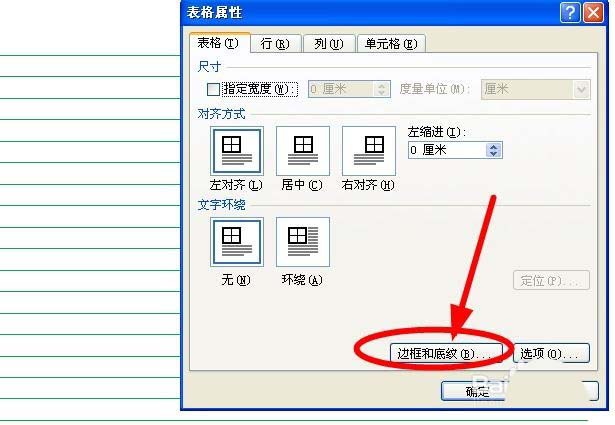 6、在"表格属性"对话框,找到"边框和底纹"单击