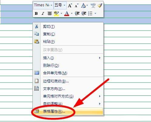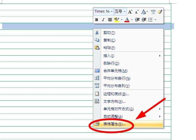 4、全选表格后,使用鼠标右键,单击右键菜单中的额"表格属性"