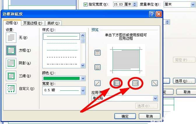 14、在"边框和底纹"对话框的预览窗口,分别单击这里,取消边框,单击"确定"