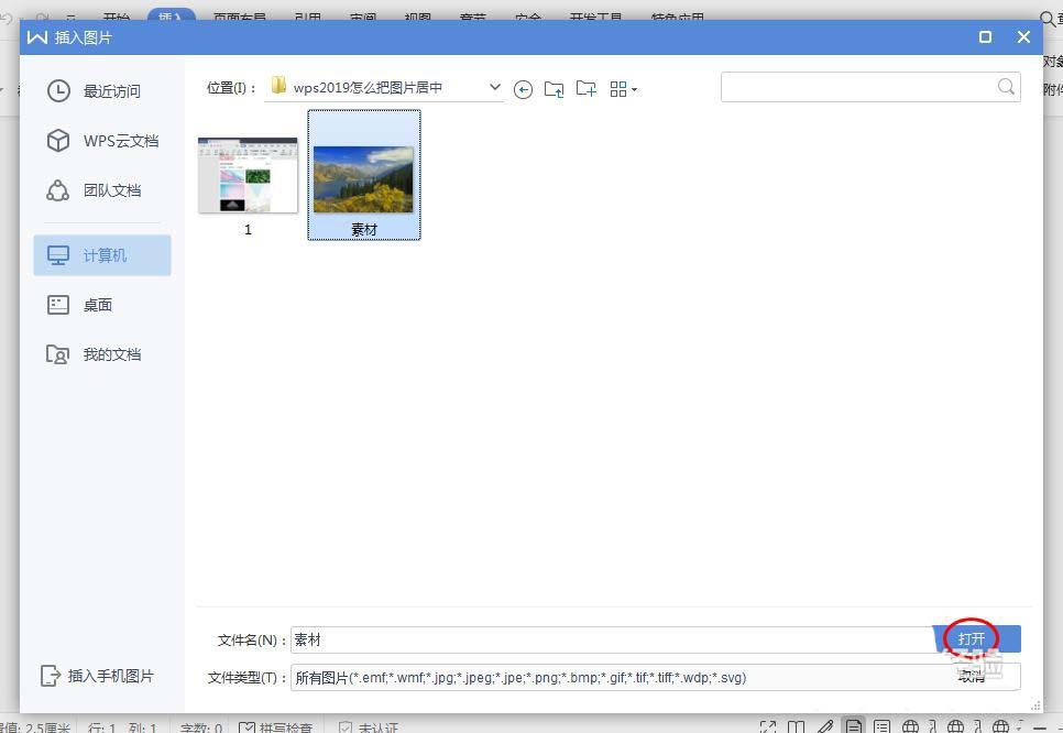2、选择需要居中显示的图片,单击"打开"按钮。