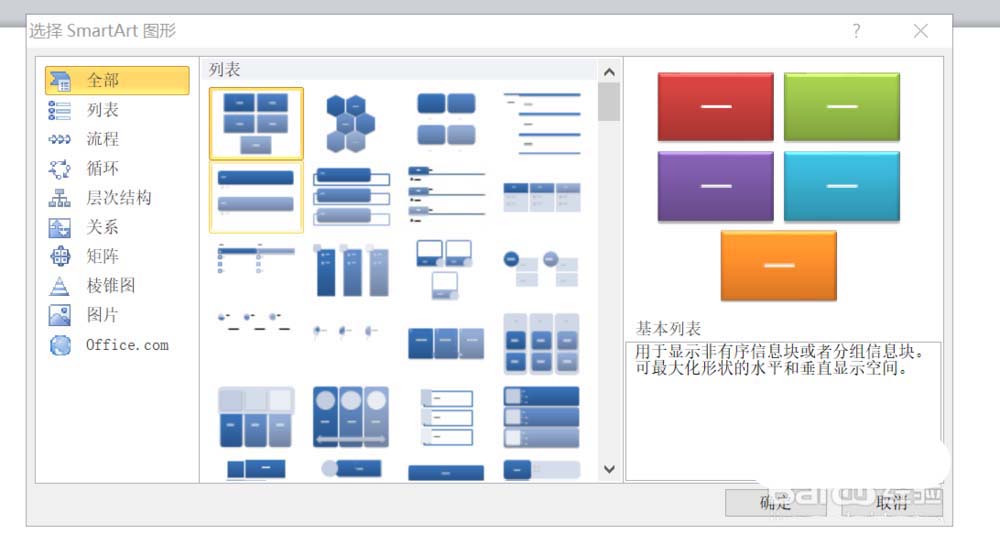 4、进入smart art图形的主界面,如下图所示。